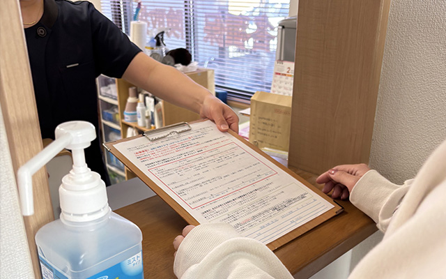 受付にて問診表をお渡しします。