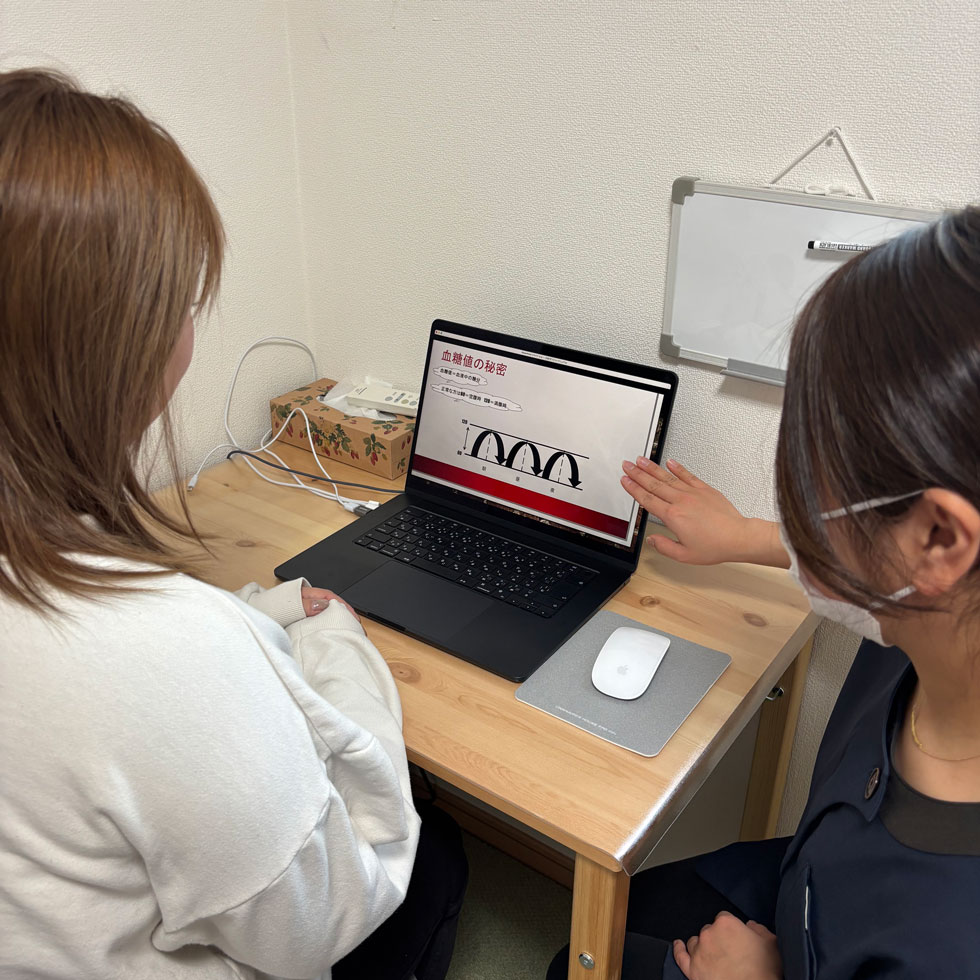 またいつでもLINEのやりとりができるようにし、不安を解消します。ダイエットは一人では続かないことを私たちはよく知っています。私たちと一緒にどうすれば痩せられるのか?を考えて、実行しましょう。